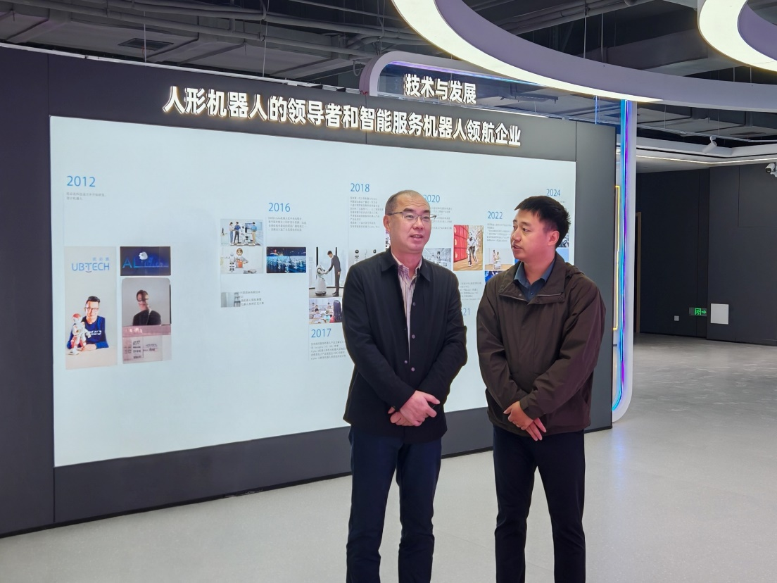 在优必选科技股份有限公司九江人工智能产业园,金小军一行深入了解智能机器人行业生态、应用场景、人才需求,结合beat365官网专业布局,与企业负责人就学生实习、毕业生就业、产业学院建设等进行了深入交流。企业负责人表示随着智能机器人行业井喷,优必选九江人工智能产业园上下游企业需要大量的具有扎实专业技能和创新能力的人才,希望与学校开展多模态校企合作,共同培养适应行业发展的高技能人才。