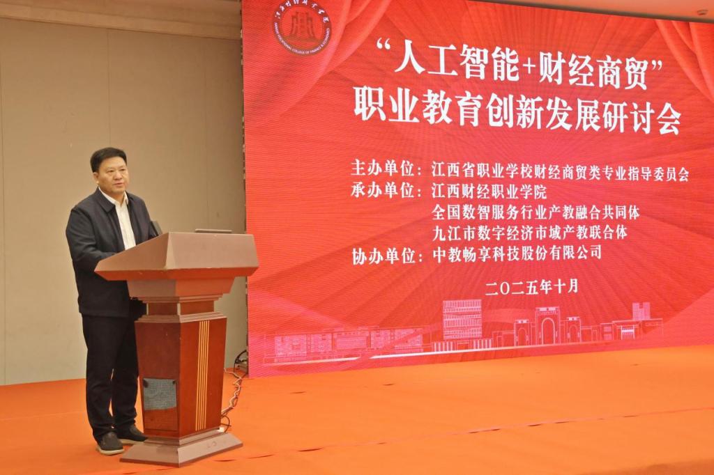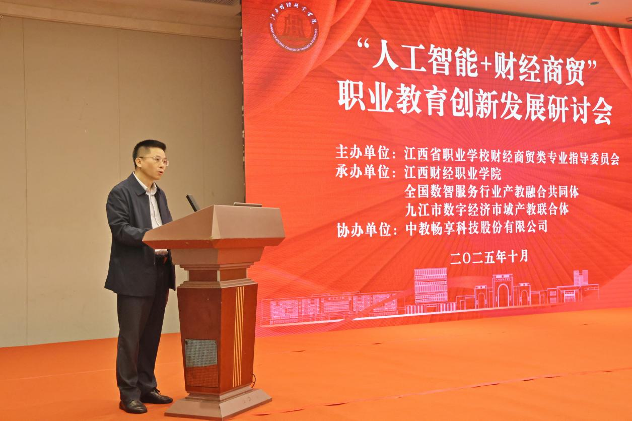 会上,中国职教学会教育数字化工作委员会执行主任、江苏省高等教育学会秘书长邓志良,中国商业联合会副会长、中教畅享科技股份有限公司董事长黄学全,教育部职业院校信息化教学指导委员会委员、享受国务院特殊津贴专家付达杰,江西高校出版社高级编辑王进颖,中教畅享科技股份有限公司博士李孝臣分别作了《AI赋能财经商贸类专业建设和教学变革》《AI融入课程,助力专业转型》《数据场域下职业学校精准教学与评价》《江西省职业教育“金教材”建设政策解读与实践》《人工智能+:从亲手打造你的第一个智能体开始》等交流报告,分享了人工之智能赋能财经商贸职业教育创新发展的最新研究成果和有益经验。