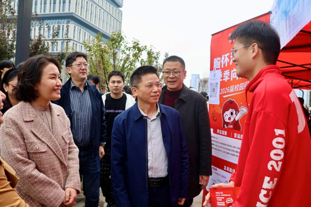 为深入贯彻党中央、国务院和省委、省政府关于高校毕业生就业工作的决策部署,落实教育部及省教育厅相关工作要求,全力促进2026届毕业生顺利尽早就业,学校抢抓秋招黄金期,于10月31日在八里湖校区及浔阳校区举办2026届毕业生秋季大型校园招聘会。校党委书记李松志和党委副书记、校长彭慧亲临现场巡视指导,各二级学院领导班子、辅导员、班主任以及学工处、团委、招就处全体同志参加活动。