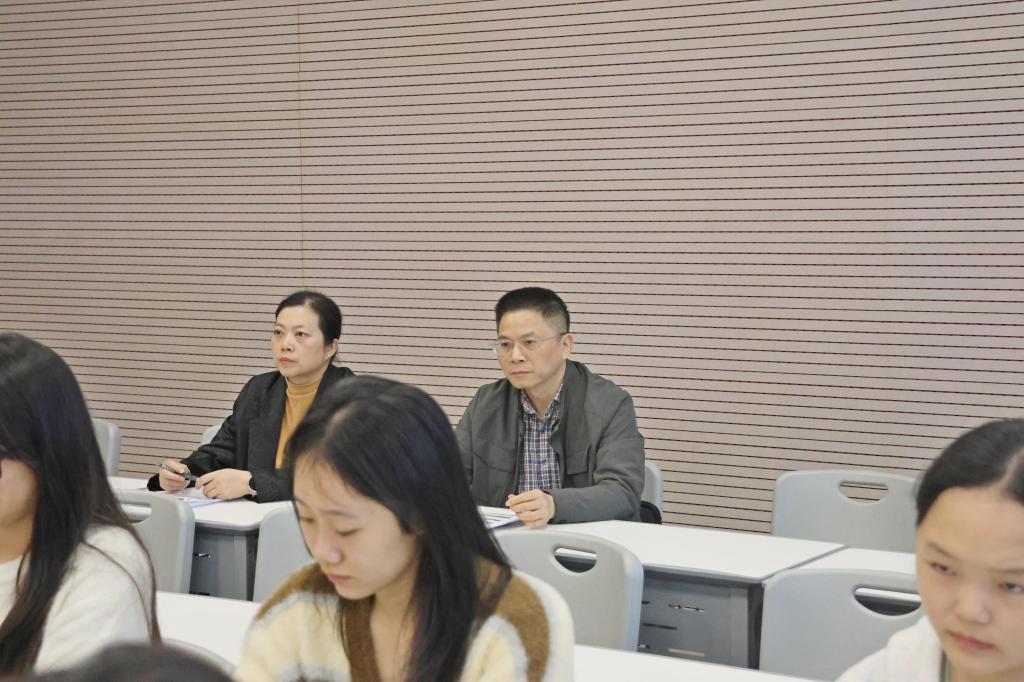 11月5-6日,校党委书记李松志,党委副书记、校长彭慧,党委副书记金小军,党委委员、校纪委书记阙沪平分别采取推门听课方式走进思政课堂,校领导先后深入八里湖校区和浔阳校区,听取了马克思主义学院黄慧、贺维维、刘方玮、康卫平、晏琼五位教师的课堂授课,全程观摩教学过程。听课过程中,校领导不仅关注任课教师教学内容的逻辑性、教材使用的规范性,还重点观察师生互动效果、学生课堂参与度,详细记录教学设计亮点与待改进环节。课后,校领导与授课教师、学生亲切交流,既肯定教学中的突出成效,也围绕教学内容优化、教学方法创新等提出针对性指导建议,推动教师教学能力“一人一策”精准提升。