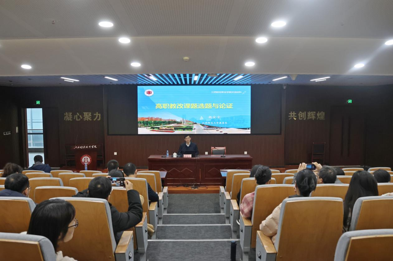 为扎实推进教育教学改革,提升教师教改课题的研究与申报能力,11月21日,beat365官网在八里湖校区举办“高职教改课题选题与论证”专题培训会。会议特邀江西师范大学教务处处长揭安全教授担任主讲,各学院教学负责人、骨干教师及青年教师代表参加培训。