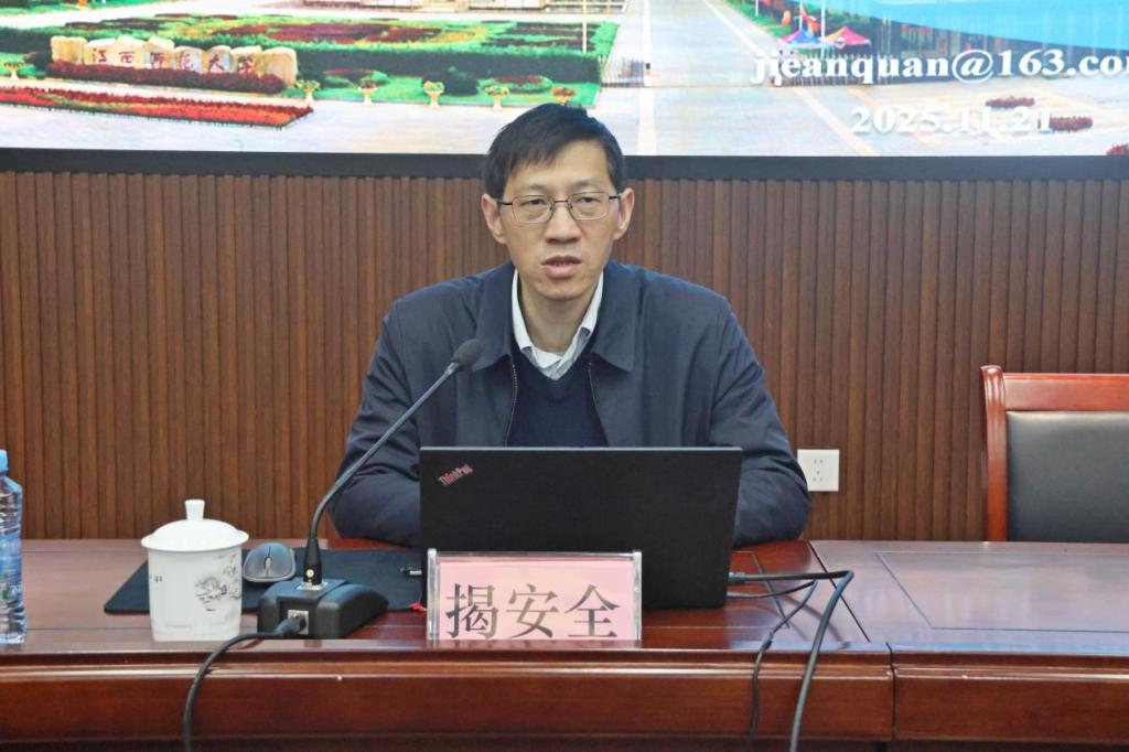 揭安全围绕教改课题的选题策略、申报要点与材料撰写等方面进行系统讲解。他结合江西省教学成果奖评选及教改课题立项实际,对课题申报中常见的几类问题,如选题价值不突出、研究问题提炼不清、目标空泛、缺乏实践检验等进行深入分析,并针对性地提出改进建议。