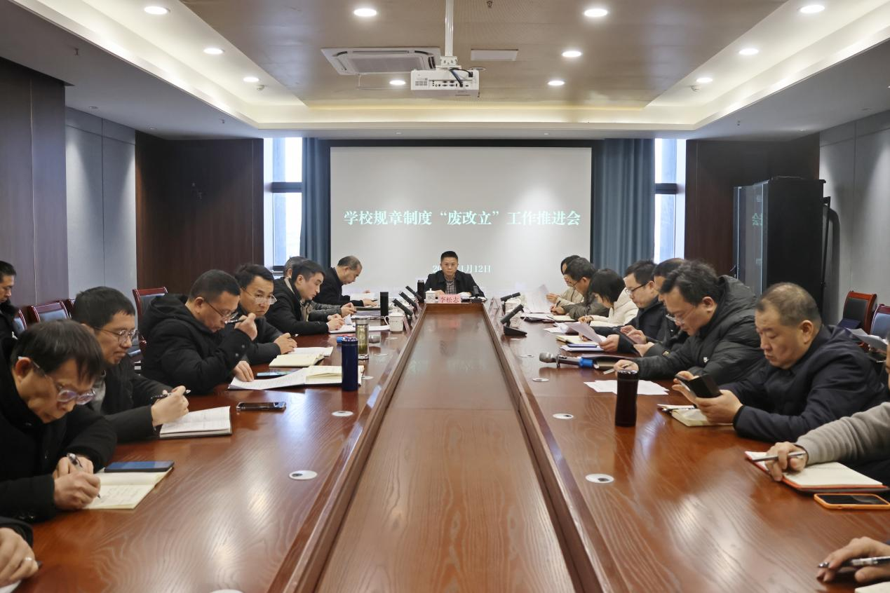 为进一步提升学校依法治校和依法办学水平,1月12日,学校在行政楼727会议室召开规章制度“废改立”工作推进会。党委书记李松志出席会议并讲话,会议由校长彭慧主持,其他校领导班子成员,相关职能部门负责人参加会议。