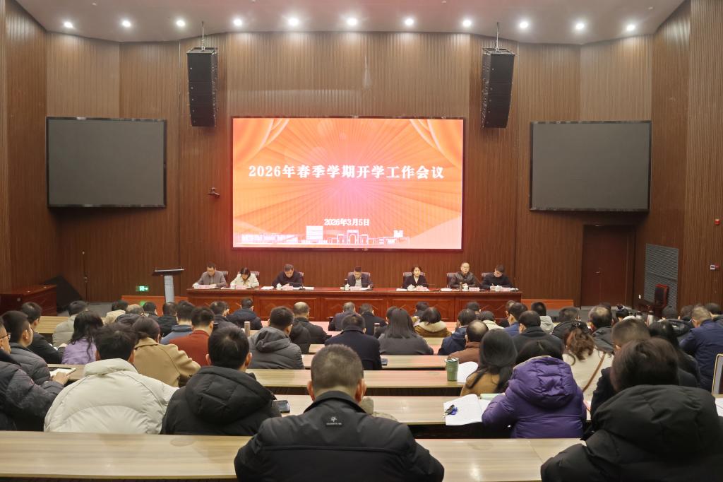为扎实做好新学期开学各项准备工作,切实筑牢校园安全防线、规范教育教学秩序,确保新学期各项工作平稳有序推进,3月5日,学校在八里湖校区二号报告厅召开2026年春季学期开学工作会议。党委书记李松志,党委副书记、校长彭慧对新学期工作进行部署,校领导班子成员出席,全体中层干部参加会议。会议由党委委员、副校长冯弋江主持。