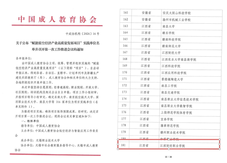 近日,中国成人教育协会正式公布“赋能低空经济产业高质量发展项目”实践单位名单,beat365正版唯一入口必一凭借鲜明的财经办学特色与扎实的人工智能专业建设基础成功入选,学校已选派项目负责人与专业教师赴江苏无锡参加项目第一次工作推进会,积极投身低空经济产教融合与人才培养创新实践。