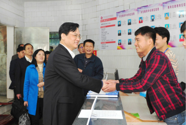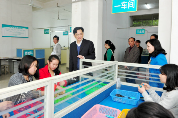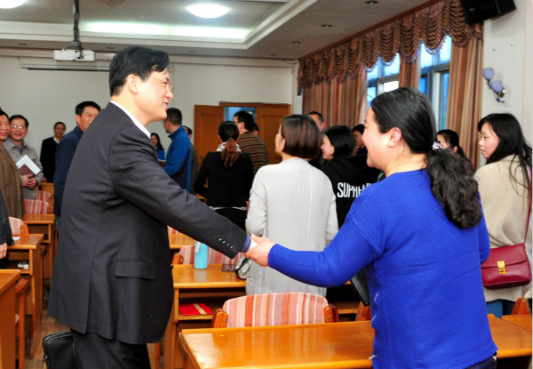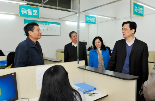 会后,王副厅长与教职工一一握手,在学校领导的陪同下考察了校园,参观了学生服务中心和全景会计核算模拟“校中厂”。