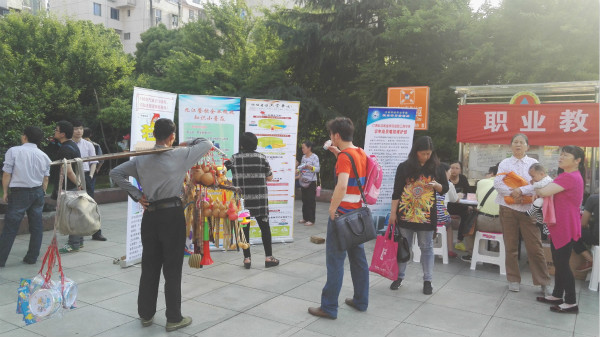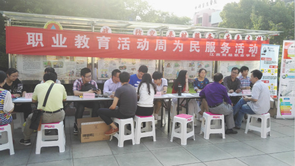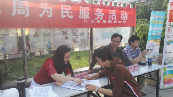 为进一步贯彻和落实好教育部和省教育厅“职业教育活动周”有关精神,根据学校职教周的活动安排, 5月13日下午,beat365官网在九江市浔阳区湖滨社区开展为民服务活动,财税金融学院、信息工程学院、招就处和教务处等部门老师及学生共30余人在湖滨广场参加了此次活动,活动得到了湖滨社区居委会的大力支持。