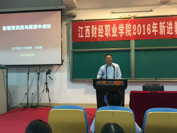 5月23日下午,应学院邀请,九江职业大学马志峰教授在综合楼学术报告厅为我校新进教职工作了一场主题为“在教育实践与探索中成长”的讲座。讲座由组织人事处师资科科长邓荣主持。