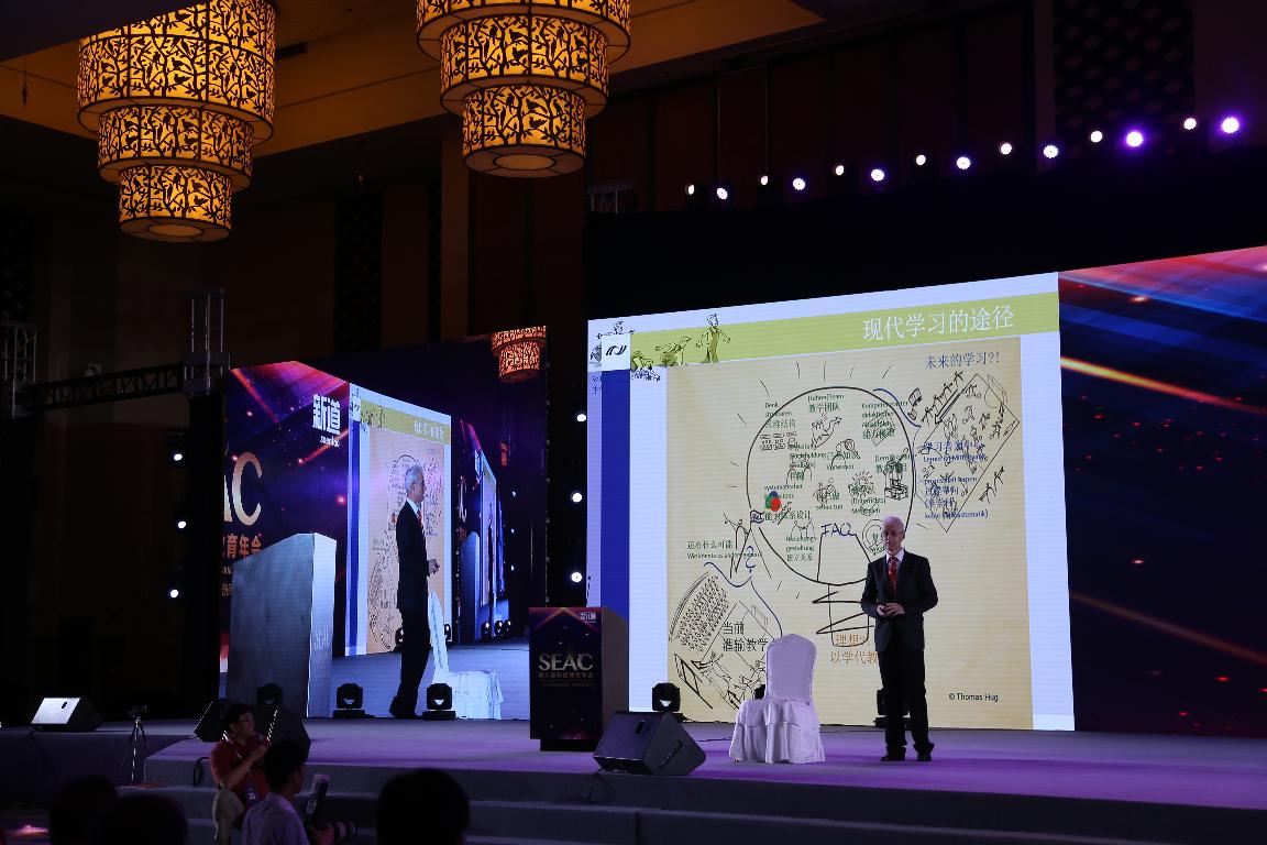 本次年会主题直击全球化创新创业教育与实践教育新理念、新模式,从国际化&本土化视角探讨创新创业教育与实践教学领域的重大机遇与变革。德国著名职业教育专家Thomas Hug先生做了《面向未来的教育》的专题报告,Thomas Hug先生独创的“能力模型+课程大纲+方法大纲”三位一体课程和教学模式,称为“胡格教学模式”,形成了一套适合职业教育特点的能力导向、自主学习、任务驱动的可操作教学体系。美国高等教育专家,斯坦福大学全球项目中心研究员、Rajiv Sharma博士做了高等教育领域的创新与创业教育-----斯坦福模式分享。美国GSV加速器联合创始人、合伙人、哈佛大学MBA、Anne Dwane女士做了致力为高中生和大学生提供升学实习和就业服务的专题报告。三位外国专家的报告让与会代表以全新的视角,了解了职业教育的前沿动态,对创新创业教育有更深刻的认识。