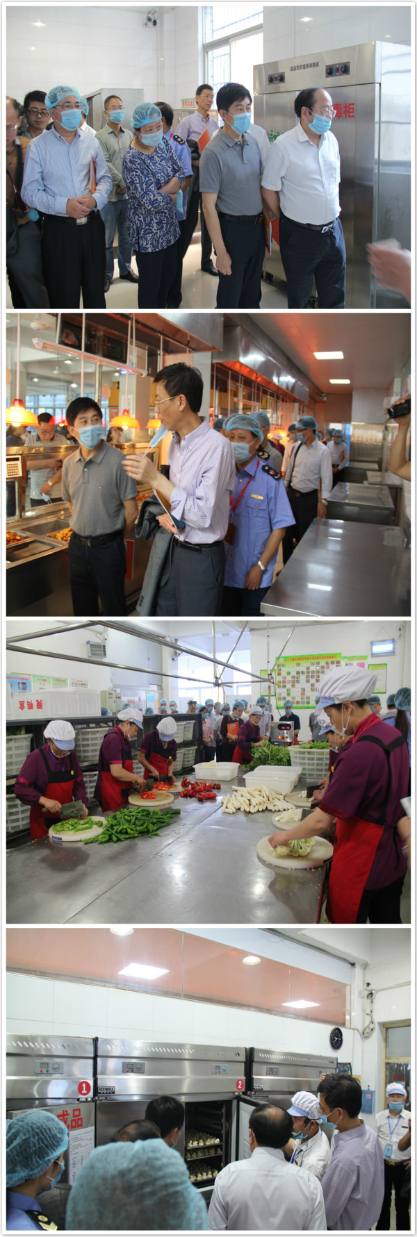 在后勤处的指导下,南区食堂采取透明隔断、开放明档、视频传输、网上晒厨房和设置参观走廊等多种方式,将餐饮服务单位的食品切配加工、烹饪制作、餐具清洗消毒等重点环节的加工过程完整、直观地展示给就餐的师生。考察团一行对我校南区食堂的积极做法和管理理念,给予了肯定。