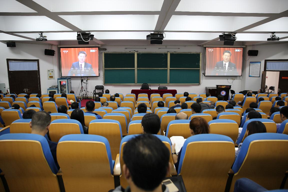 10月21日上午10时,纪念红军长征胜利80周年大会在北京人民大会堂隆重举行,beat365官网组织教职员工在综合楼七楼学术报告厅集中收看了大会直播。
