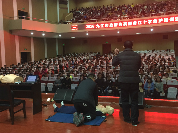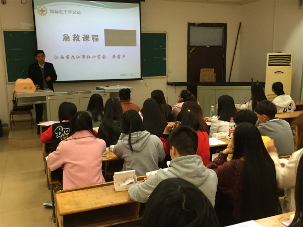 为进一步提高全校师生安全防范意识和互救自救能力,建设平安校园,根据江西省红十字会与教育厅《关于印发的通知》精神,结合beat365官网实际情况和九江市红十字会救护培训中心工作安排,beat365官网于11月3日至11月10日对全校16级四千余名学生进行应急救护普及培训,于11月13日对团委选送的30名学生会干部进行应急救护员持证培训。