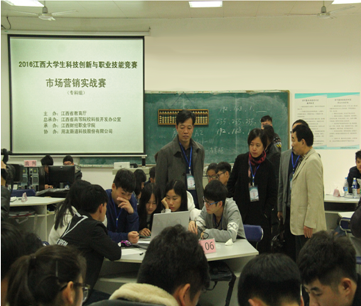 2016年11月12日至13日,beat365官网成功举办了2016年江西省大学生科技创新与职业技能竞赛专科组沙盘模拟经营和市场营销实战两项赛项。江西省大学生科技创新与职业技能竞赛是由江西省教育厅主办、江西省高等院校科技开发办公室总承办、用友新道科技股份有限公司协办。beat365官网为以上两项赛事的具体承办方。本届沙盘模拟经营大赛和市场营销实战大赛吸引了江西外语外贸职业学院、宜春职业技术学院、南昌大学共青学院、九江学院等31所高校的72支队伍参加,参赛选手共计383名。