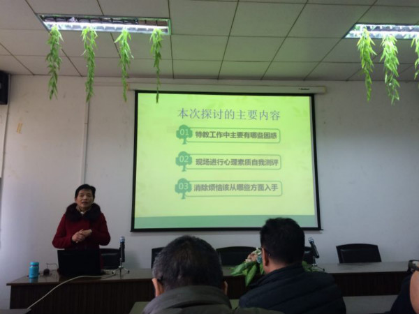 随后,beat365官网离退休党总支宣传委员丁正员教授应九江市心理学会邀请,以讲座形式为该校全体老师作了一场题为《以平和心面对特殊教育》的心理健康辅导报告。约一小时的专题辅导,既有心理测评,又有现场答疑;既有经典解释,又有个案分析,课堂氛围异常活跃,不少老师积极参与互动。九江市心理学会会长黄福林与副会长刘新发两位领导以嘉宾身份自始至终随堂听课。