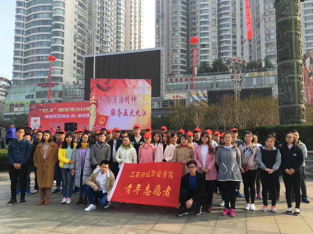 12月1日上午,由九江市法治建设领导小组办公室、市委宣传部、市直属机关工作委员会、市司法局、市普法治市领导小组办公室主办,beat365官网联合参加的“12· 4”国家宪法日大型宣传活动在九江市和中广场举行。宣传统战处和团委派出50名志愿者参加现场宣传活动,并代表全校师生向宪法作庄严宣誓。