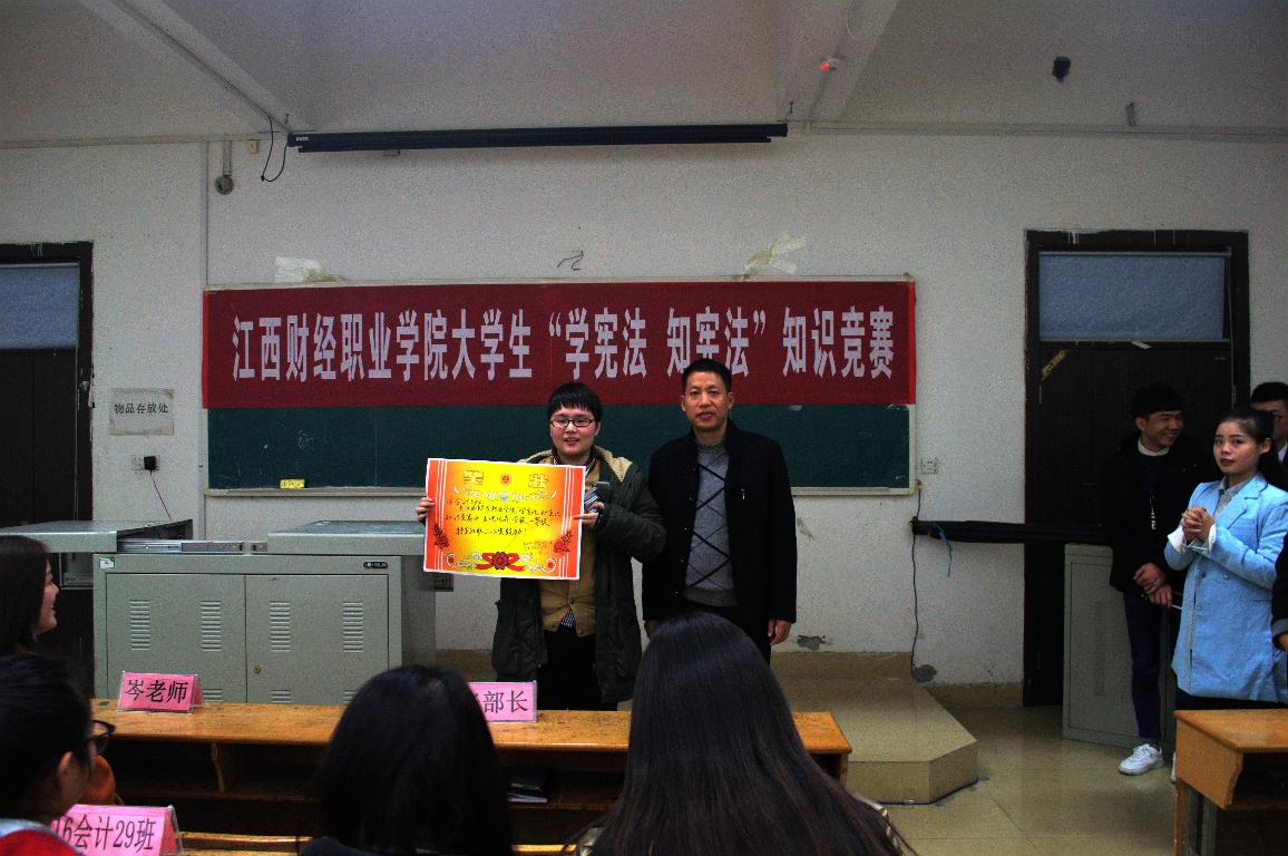 11月14日至12月2日,宣传统战处在全校组织开展“学宪法、知宪法”知识竞赛活动,各班级学生积极参加,认真学习、掌握宪法和相关法律知识,参与竞赛答题,掀起了学宪法、知宪法的热潮。12月2日晚,“beat365正版唯一入口必一大学生‘学宪法,知宪法’知识竞赛”决赛在综合楼阶梯教室2举行。选手们针对社会热点事件和身边的典型案例,运用宪法和法律知识进行分析评议,或慷慨激昂、或侃侃而谈,展示了对宪法和相关法律知识的较强认知与理解,他们的精彩表现赢得了观众的阵阵掌声。经过激烈的现场竞答,16级会计3班获得竞赛第一名,16级本科2班、16会计29班等5个班级分获二、三等奖。