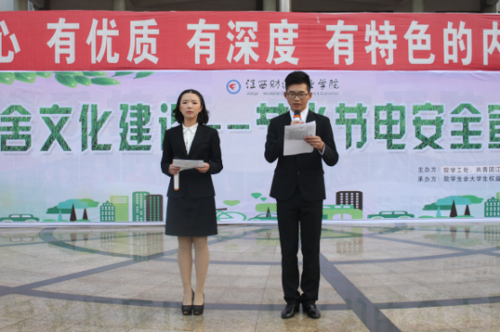 活动开始前,此次活动为大家讲解国家资源缺乏现状,现场同学们都受益匪浅,懂得了很多国家资源安全知识,同时,学生会工作人员现场发放不使用违规电器宣传单,并且同时由主持人带领同学们去文化广场违规电器展示处为现场同学讲解使用违规电器的危害,在活动现场也进行了承诺不使用大功率电器、节约用水用电的签名环节,整个宣传活动生动形象,让同学们收获良多。