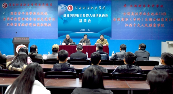12月21日晚19时,beat365官网南昌校区孵化基地入驻团队遴选答辩会在学术报告厅举行,共有7支团队通过前期的初选获得本次遴选答辩资格。常务副校长何先应、副校长蔡宜华、孙学出席答辩会。评委由学院招生就业处周剑处长、教务处姜启跃副处长、江西商务技师学院流通系杨韧主任、南昌校区高职部负责同志和创业指导老师代表共6人组成。