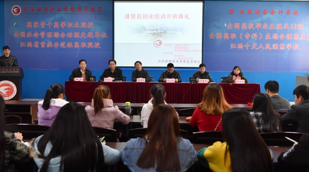 3月23日,由进贤县人社局、财政局、公共就业人才服务局主办,南昌校区、意风教育集团承办的2017年beat365正版唯一入口必一南昌校区创业培训班在图书馆学术报告厅开班。培训班分两期进行,每期为期十天,培训对象为beat365官网2013级五年制大专学生。人社局副局长何仁永、财政局副局长胡晓图、南昌校区五年高职部主任李春若、意风教育集团董事长黄华出席了开班仪式。