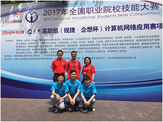 5月9日,2017年全国职业院校技能大赛“计算机网络应用”赛项在天津电子信息职业技术学院圆满落幕。本次大赛由教育部联合天津市人民政府、国家发展和改革委员会、工信部等37家部门(单位)共同主办,注重培养学生的专业能力,大力弘扬工匠精神。“计算机网络应用”赛项规模超前,共有全国30个省、直辖市、自治区共66支代表队的198名选手参赛。我校代表队在比赛中克服困难、顽强拼搏、团结协作,经过4个小时紧张激烈的角逐,荣获团体二等奖。这是江西省迄今为止在该赛项的第一次、也是唯一一次获奖。