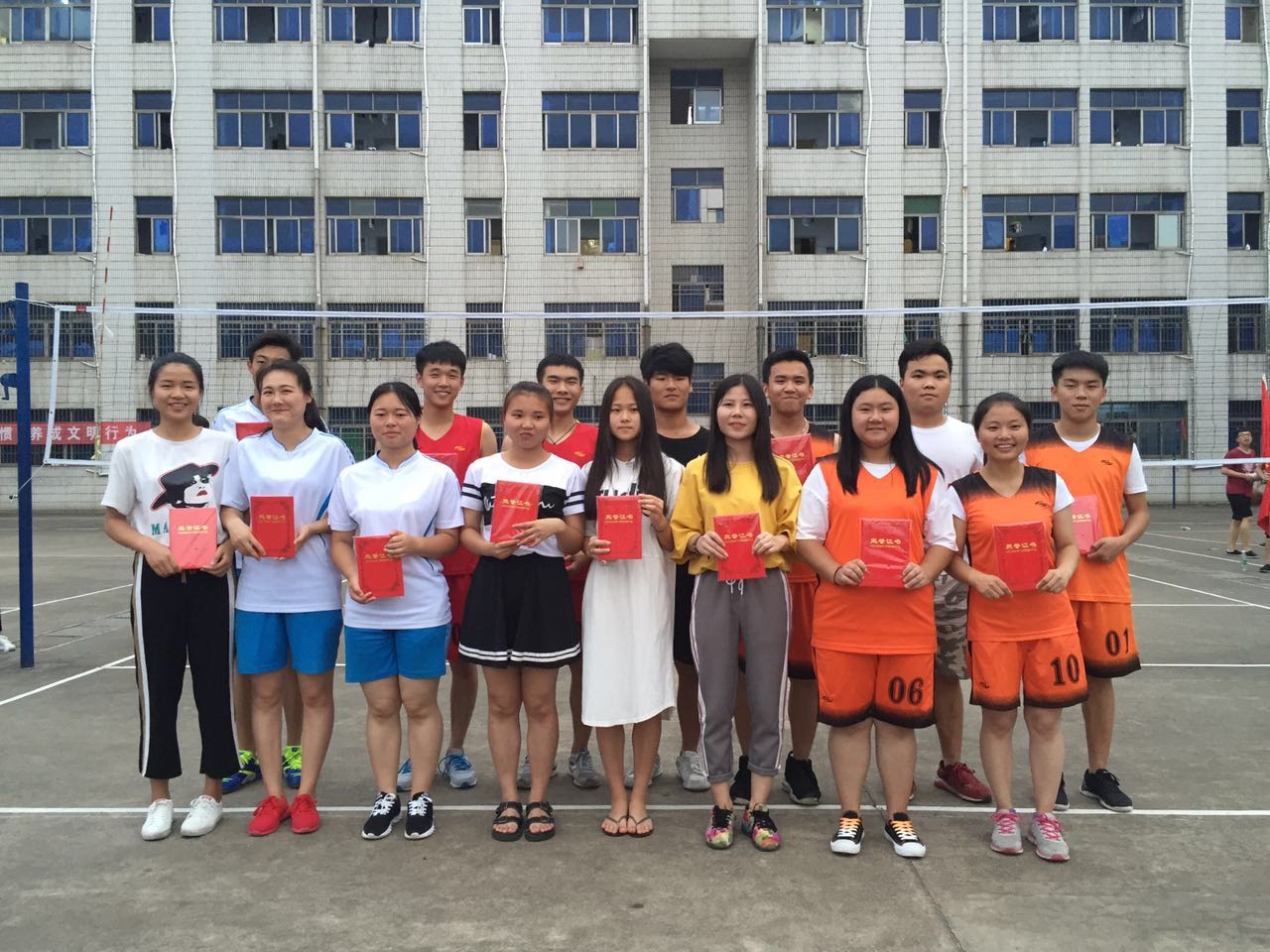 排球比赛不仅锻炼了同学们的身体,还是他们展示自己,肯定自己的平台,同时,还彰显出他们突破极限,挑战自己的勇气,极大的丰富了学生的课余生活,为和谐校园的建设奠定了基础。