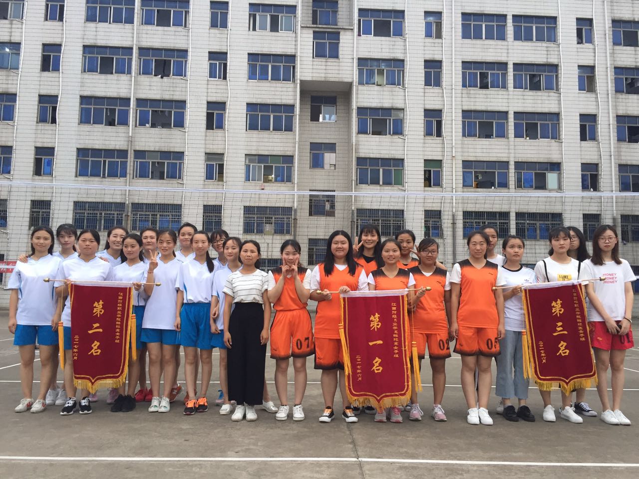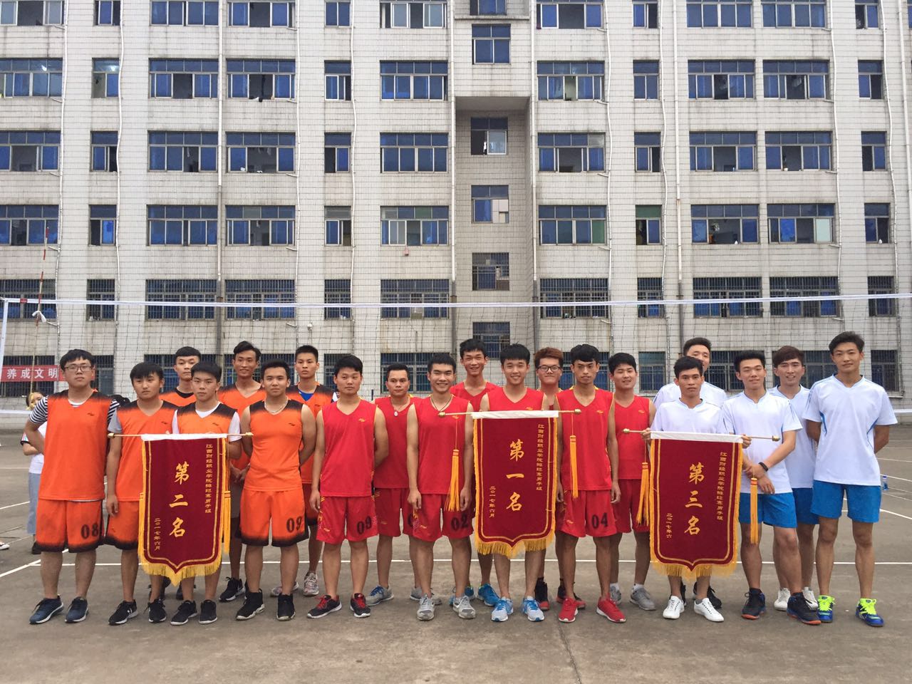激情五月,为丰富同学们的课余生活,促进同学间的协作精神,增进友谊,基础部组织了历时一个多月的全校学生排球比赛。本次以循环赛制进行比赛,各队队员激情高昂,斗志满腔,大家本着“在比赛中建立友谊,在友谊下参加比赛”的精神纷纷投入到“球战”中。经过激烈角逐,各奖项瓜熟蒂落:会计第一学院、财税金融学院、会计第二学院分别获男子组比赛前三名;财税金融学院、会计第二学院、会计第一学院分别获女子组比赛前三名;会计第二学院、财税金融学院分别获得优秀组织奖;其中会计第一学院的李家龙、万思远、林晓红,会计第二学院的李文鹏、李丹、谢雪芬;财税金融学院的邓旺、卢翔、张亚琳、戴维,工商管理学院的楼博涵、杜鹃,经济贸易学院的黄浪、邵婷婷,外国语学院的廖丽萍、田小凤分别获得本次排球比赛优秀运动员。