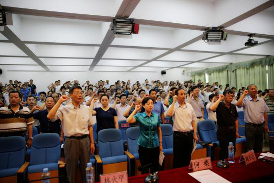 会上,新老党员面对党旗共同进行宣誓,新党员代表邓鹏作了发言,校党委副书记、校长林火平宣读了《关于表彰2016年度党内先进的决定》,校党委委员、副校长谢小云宣读了《关于确定第七批党员示范岗的决定》,与会领导给获奖的先进基层党组织颁发了奖牌,并为第七批党员示范岗同志授牌,大会在雄壮的《国际歌》声中结束。