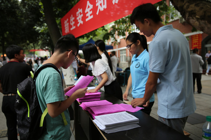 在全校共同努力下,新生报到首日现场秩序井井有条,校园内及周边环境安全稳定,整个校园气氛和谐,秩序井然。