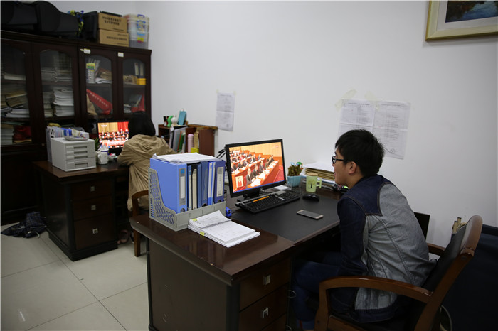 10月18日上午9时,中国共产党第十九次全国代表大会在北京人民大会堂开幕,beat365官网积极组织师生收看收听大会盛况。在七楼学术报告厅、办公室、教室、宿舍等多个场所,师生通过网络、电视、广播认真聆听、学习习近平总书记代表十八届中央委员会向大会所作的题为《决胜全面建成小康社会 夺取新时代中国特色社会主义伟大胜利》的报告。