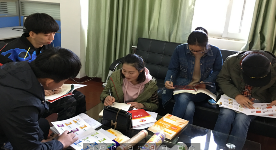 图为实训学生分析讨论实训项目
