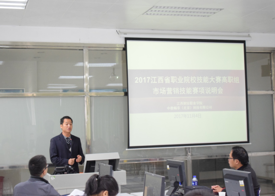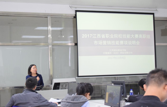 为确保2017年全省职业院校技能大赛高职组“市场营销技能”赛项的顺利进行,2017江西省职业院校市场营销技能赛项说明会于11月4日上午在我校召开。会议由工商管理学院副院长武丹主持,技术支持单位中教畅享(北京)科技有限公司负责人邵振亚、学院教务处副处长姜启跃等出席会议,来自江西外语外贸职业学院、江西环境工程职业学院等院校近50名参赛队指导教师参加会议。