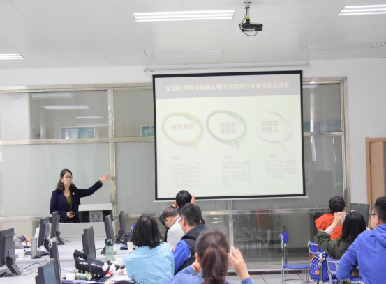 在说明会上,姜启跃副处长对兄弟院校各位领导及参赛指导老师的到来表示热烈欢迎,对各位老师对大赛的支持和关心表示感谢。他倡议各兄弟院校通过大赛加强沟通,增进了解,共同进步。随后,市场营销技能赛项负责人易娇艳老师对此次大赛的筹备情况、参赛要求、赛项内容进行了说明。她承诺比赛期间将全心全意为各参赛院校做好服务工作,确保整个赛事公平、公正地进行。
