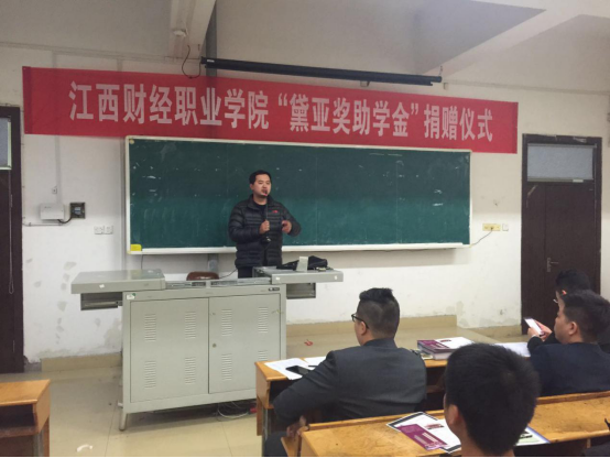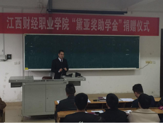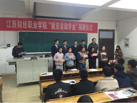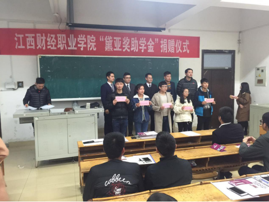11月20日,beat365官网在综合楼阶梯教室三举办“黛亚奖助学金”发放仪式。学校招就处、团委和相关老师,广东黛亚集团有限公司董事长陈期贤,受资助的50名贫困学生和部分学生代表参加此次活动。