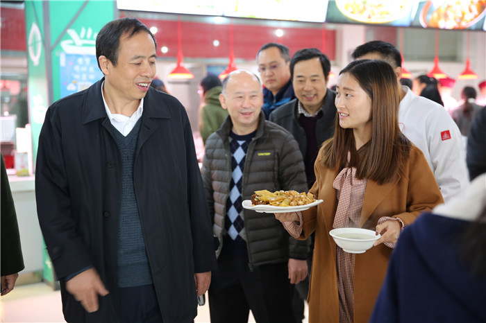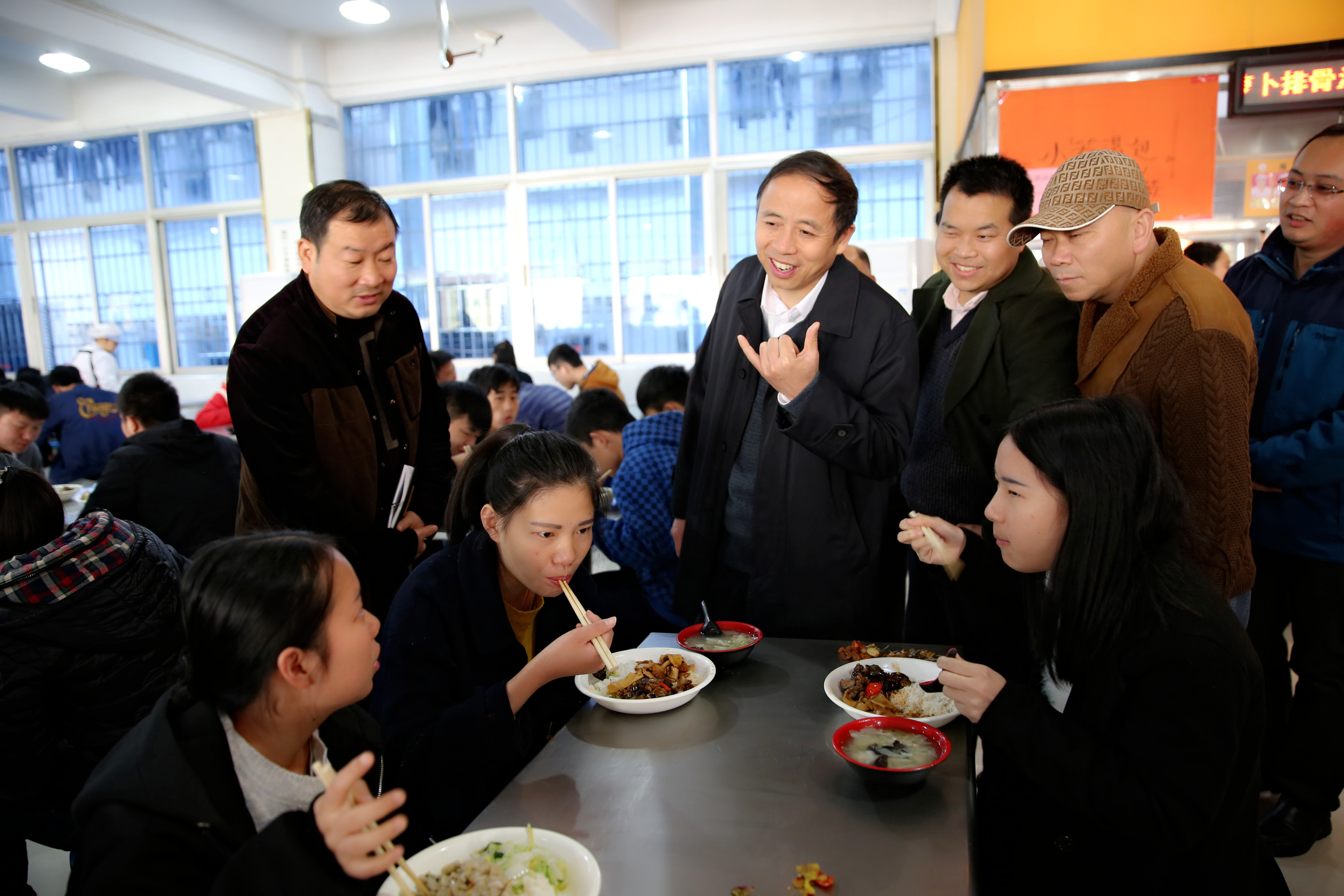 每到一处,林火平校长与就餐的同学亲切交谈,询问菜品的价格、饭菜是否可口。