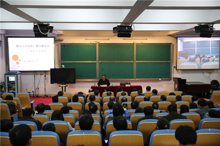 11月22日下午,党委副书记、院长、林火平教授在综合楼七楼报告厅以“恪守六大纪律,做合格党员”为主题,为学校300余名教职工党员干部上了一堂廉政专题党课。讲课中,林火平从理论到实践,结合典型案例,以案释纪,教育广大党员干部要守纪律、讲规矩,强化纪律的权威性和威慑力,促进beat365官网风清气正的政治生态建设。
