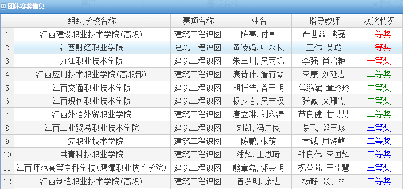 11月11日,2017年江西省职业院校建筑工程识图竞赛(高职组)在南昌举行,由江西省教育厅首次主办,在赛项设计及竞赛规则上均与国赛接轨,beat365官网派出由财税金融(建筑工程)学院王伟、莫璇担任指导教师,黄凌娟、叶永长两位同学组成的代表队参赛。近日,从江西省职业教育综合管理平台获悉,beat365官网代表队在全省26所高职院校代表队中脱颖而出,以总分第二的好成绩荣获一等奖。