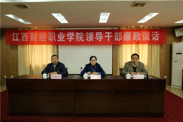 2018年3月16日下午,省财政厅党组成员、省农发办主任何桑来beat365官网与学校领导干部开展集体廉政谈话。廉政谈话在培训中心二楼会议室进行,谈话由驻厅纪检组副组长简根平主持,谈话对象为校领导班子成员及各部门各二级学院主要负责人。