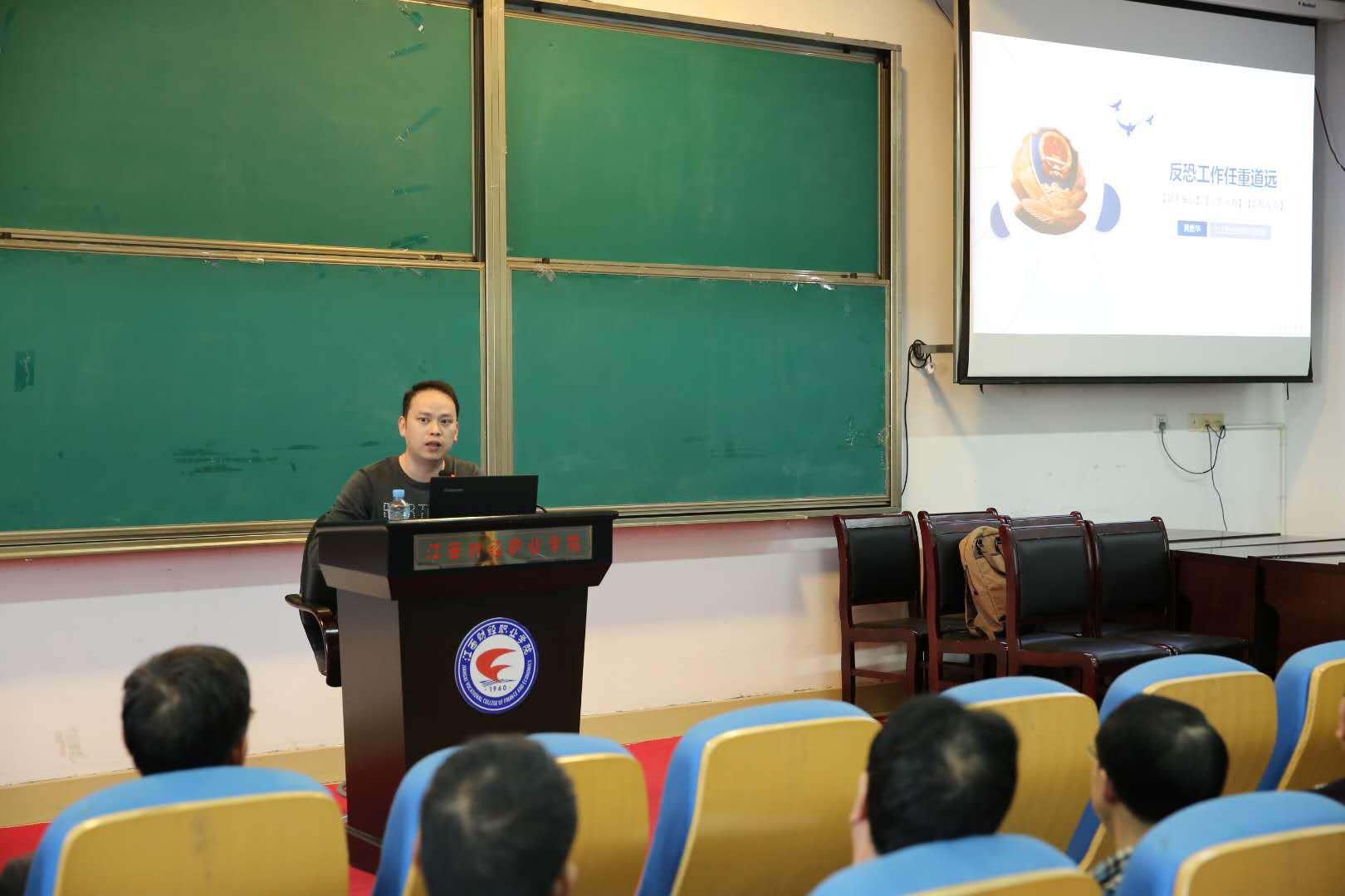 “平不肆险,安不忘危”。第三个全民国家安全教育日到来之际,为了切实做好国家安全教育工作,了解高校所面临的国家安全形势,提高师生的国家安全意识,4月17日下午,九江市公安局反恐支队教导员黄勇华警官在beat365官网综合楼七楼学术报告厅做了题为《反恐工作任重道远》的专题讲座。教职工300余人参加了报告会,报告会由安全保卫处处长主持。