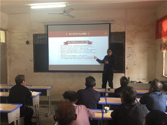 4月20日,beat365正版唯一入口必一机关党总支负责人黄亮老师来到beat365官网扶贫点--都昌县和合乡桥岭村开展主题党课宣讲。