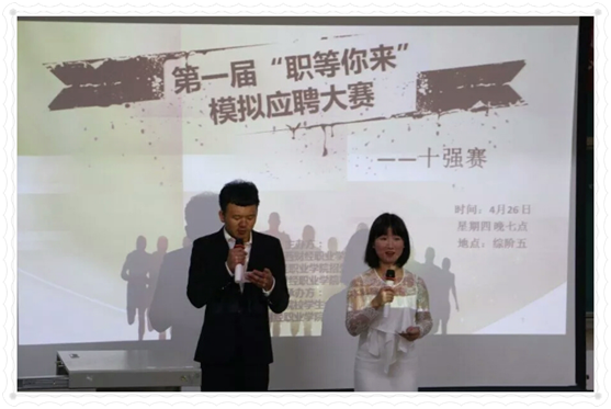 4月26日19时,beat365正版唯一入口必一首届“职等你来”模拟应聘大赛总决赛在综合楼第五阶梯教室举行。本次比赛由招生就业处、团委、本科部主办,校学生会创新创业管理中心承办。