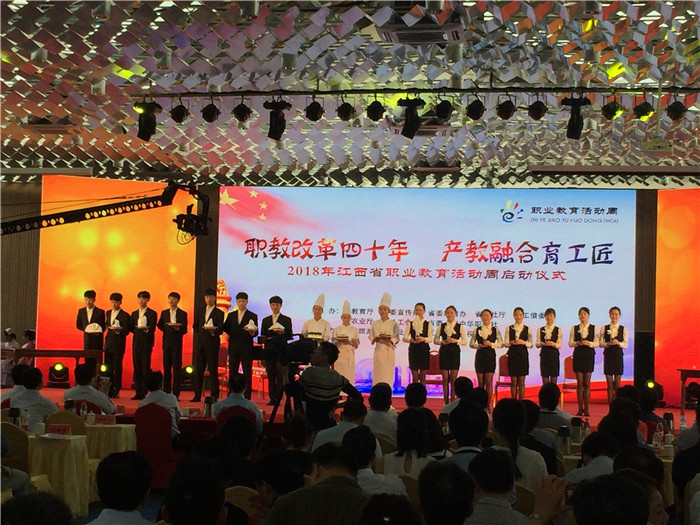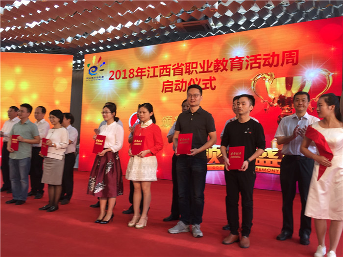 职教改革40年,产教融合育工匠。5月6日上午,2018年江西省职业教育活动周启动仪式在江西旅游商贸职业学院举行。省政府副省长孙菊生宣布活动周正式启动。省教育厅厅长叶仁荪在仪式上讲话。beat365官网党委委员、副校长蔡宜华、教务处分管负责人、获奖教师代表等参加了启动仪式。曹云波老师作为beat365官网全国信息化教学大赛一等奖获奖团队代表上台领奖。