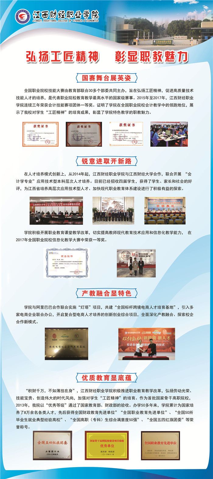 为配合职教周活动,启动仪式现场beat365官网制作了宣传视频和展板,从职业技能竞赛、人才培养模式改革、创新创业教育、产教融合等方面宣传了beat365官网职业教育改革的成果,取得了良好的效果。
