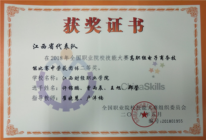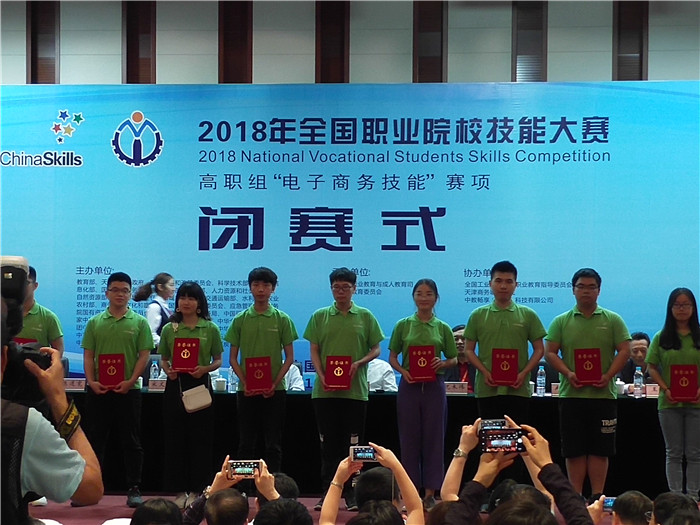 5月11日,由教育部、天津市人民政府等35家单位共同主办的“2018全国职业院校技能大赛”高职组“电子商务技能”赛项在天津商务职业学院开赛,来自全国30个省市的86支代表队参与角逐。beat365官网派出经济贸易学院16级电子商务专业许锦鹏、曾雨辰、王旭、郑莹四位同学组成的代表队代表江西省参加竞赛。经过一天紧张激烈的角逐,beat365官网代表队成绩排名15(beat365官网在此赛项中历年最好名次),荣获大赛团体二等奖。这是beat365官网在此赛项连续第四年获奖,再一次为学校争得了荣誉。