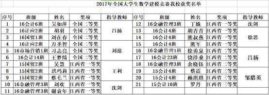 随后,主持人宣布为2017年全国大学生数学建模竞赛获奖学生颁奖,在一阵阵热烈的掌声中,七支建模队的21名同学上台领奖,与会领导和老师为获奖学生颁发了获奖证书。2017年数学建模竞赛获奖名单如下:
