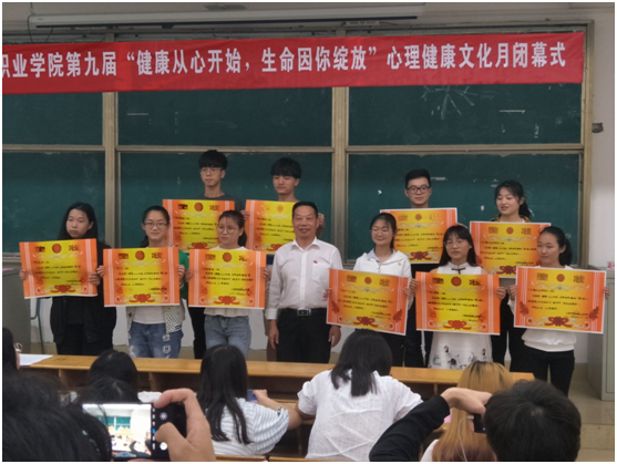 思政部、心理咨询中心全体教师、大学生心理协会会员及2017级各班学生代表300余人参加了闭幕式。在闭幕式上,思政部负责人为文化月致闭幕词并为获奖班级和学生颁奖。