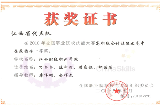 beat365官网荣获2018年全国职业院校会计技能大赛一等奖