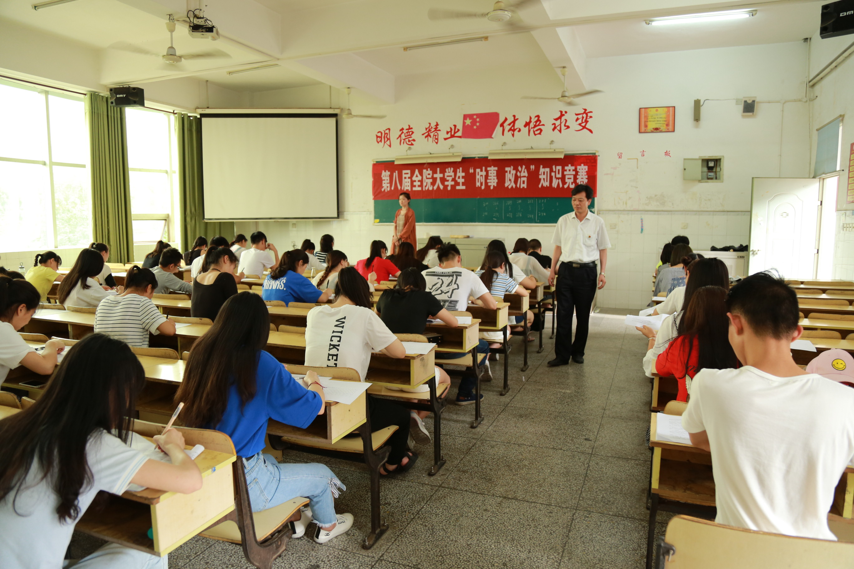 为进一步推动习近平新时代中国特色社会主义思想进学生头脑,完善大学生思想政治教育第二课堂,拓展大学生思想政治教育平台,鼓励大学生积极关注时事,提升大学生的思想政治素质和理论素养,6月13日下午,思政部举办第八届“时事•政治”知识竞赛活动,各班推荐的300余名同学参加。