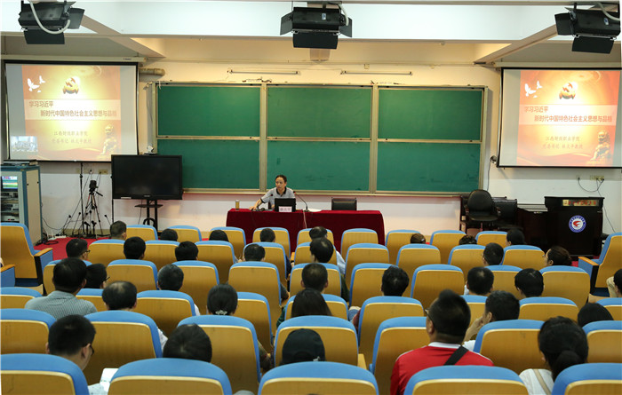为扎实开展“不忘初心·牢记使命”主题教育,深入学习贯彻习近平新时代中国特色社会主义思想和党的十九大精神,6月26日下午,学校在综合楼学术报告厅召开党员大会,校党委书记林火平教授作题为《学习习近平新时代中国特色社会主义思想》的党课报告。校本部教职工党员现场参加了学习,南昌校区全体党员通过同步视频参会。