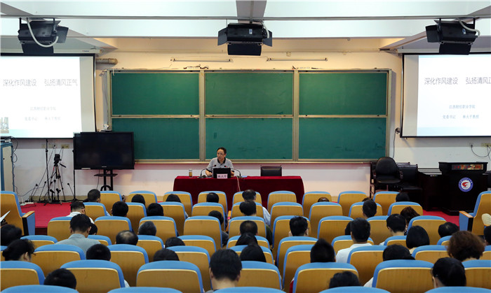 弘扬清风正气”为主题的廉政专题党课,南昌校区全体党员通过视频同步听课。