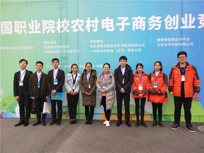 11月24日,2018年第二届全国农村电子商务创业竞赛全国总决赛在西安职业技术学院隆重举行,来自全国中高职78支代表队同台竞技,展开了激烈竞争,苹果F4团队的《九江芝游农产品创业平台方案》得到了专家一致好评,以小组第一的成绩荣获全国一等奖,探险家、前进者团队荣获全国二等奖,崔晓慧、邓荣、陈洁荣获优秀指导教师。